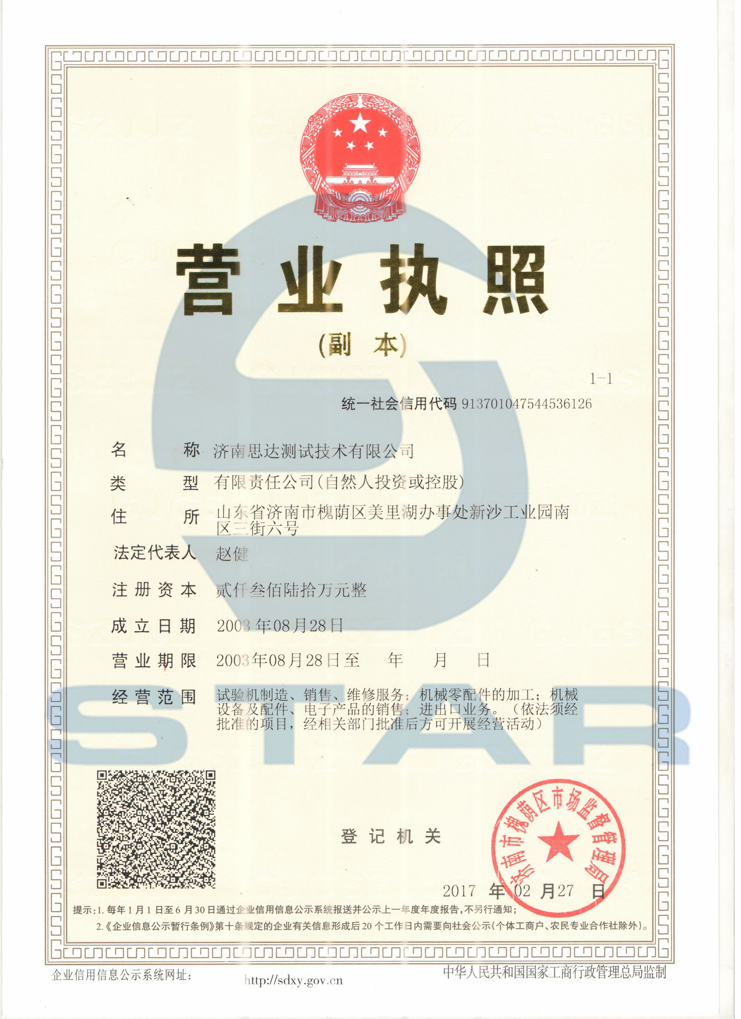 濟(jì)南思達(dá)營業(yè)執(zhí)照、地址變更通知:
