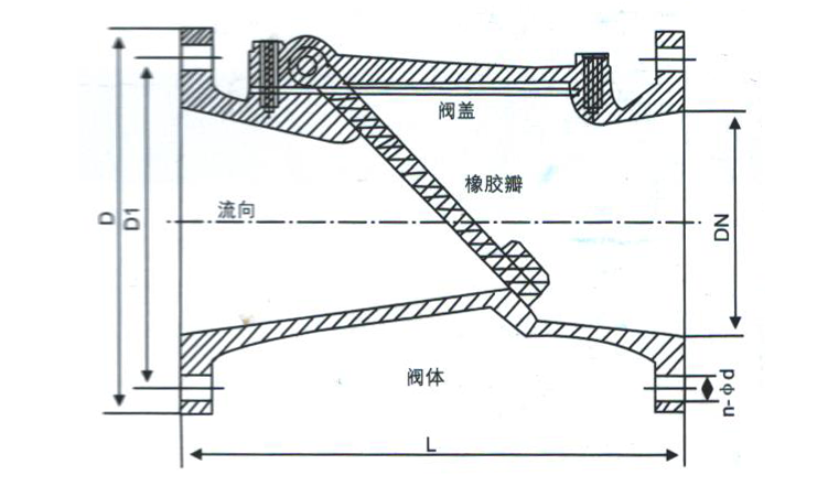 H44X(SFCV)橡膠瓣止回閥主要外形尺寸(法蘭連接尺寸按GB4216的規定)